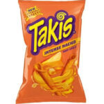 Takis Intense Nacho Non-Spicy chips are crunchy, cheesy, non-spicy rolled tortilla chips with a nacho cheese flavor.