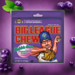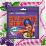 The Ball Players’ Gum, for major leaguers of all ages. Shredded bubble gum in a folding foil pouch that keeps the juicy grape flavour locked inside.