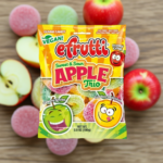Efrutti Apple Trio is a 100g pack of sweet and sour gummy candies featuring three classic apple flavors: Granny Smith, Golden Delicious, and Honey Crisp.