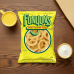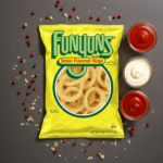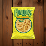 Funyuns consist primarily of cornmeal, ring-shaped using an extrusion process, representing the shape and texture of fried onion rings.