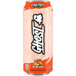 Ghost Peaches (473mL) is a sugar-free energy drink that delivers a refreshing burst of juicy peach flavor.