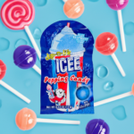A two-part candy featuring a lollipop for dipping into a pouch of fizzy, fruit-flavored popping candy, inspired by the classic ICEE frozen drink.