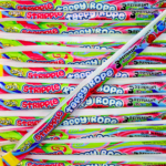 JoJo’s Stripple Taffy Rope is a fun gluten-free treat for kids, bursting with 3 different colors and flavors! Corn Syrup, Sugar, Dextrose, Maize Starch, Non- Hydrogenated Vegetable Oil, Food Acid 330, Flavours, Emulsifiers (471, 322), Soy Protein, Colours 102, 129, 133.