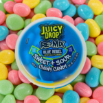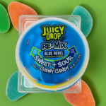 Juicy Drop Re-Mix is a delicious 2-in-1 sweet and sour chewy candy experience, in a dual-compartment twisting container
