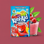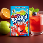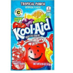 Enjoy this famous American beverage in your own home. Mix Kool Aid Tropical Punch powder with water and sugar to create a delicious and refreshing drink.