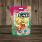 Prepare for a delightfully tart surprise with Lolloz Gummy Bursts Sour Eyez! This 108g pack features unique eye-shaped gummies that deliver a thrilling one-two punch: first, a bracing burst of sourness, quickly followed by a sweet, fruity center.