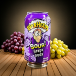 Warheads Sour Grape Soda: Intense grape flavor with a powerful sour kick. Experience the electrifying tang that Warheads is known for, in a refreshing soda 355ml of uniquely bold and puckering grape refreshment.