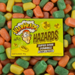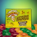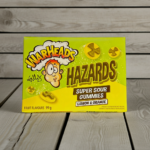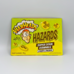 Prepare for an intensely tangy experience with Warheads Sour Hazards, a box of super sour lemon and orange gummies designed to challenge your taste buds.