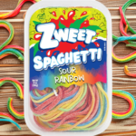 Zweet Sour Spaghetti Rainbow (285g) offers long, chewy strands of candy with a vibrant rainbow of assorted fruit flavors and a super-sour coating for a tangy kick.